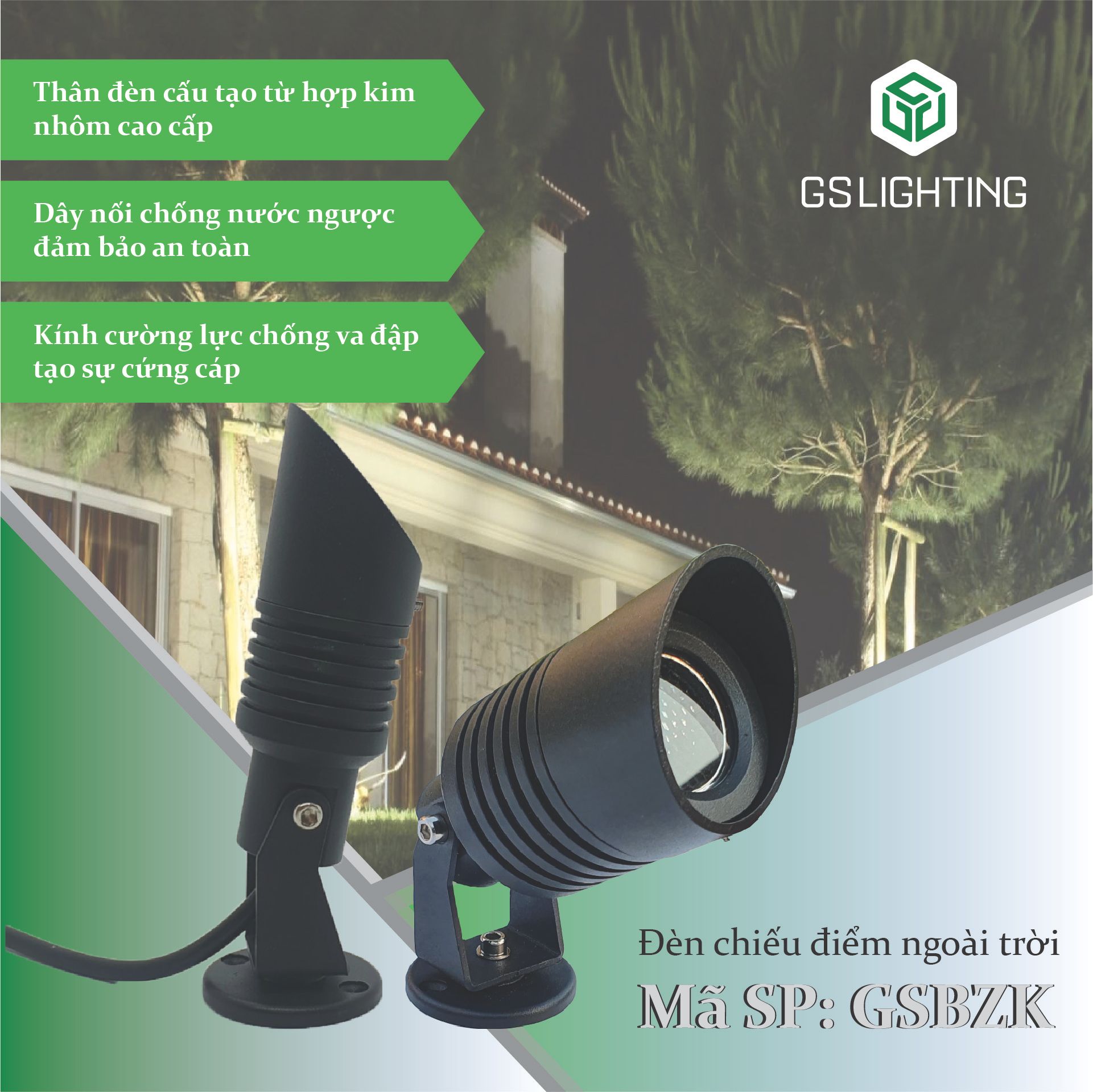 Đèn có nhiều công dụng như: chiếu điểm ngoài trời sáng cây cối, vườn hoa, thảm cỏ, đường đi dẫn lối, rọi cột…