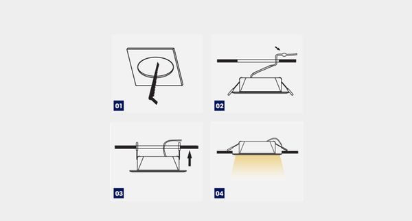 Lỗ khoét Ø90 mm tương thích với phần lớn trần thạch cao hiện nay, thân đèn bằng nhôm kết hợp nhựa PA giúp tản nhiệt tốt và giữ ngoại hình bền đẹp theo thời gian.