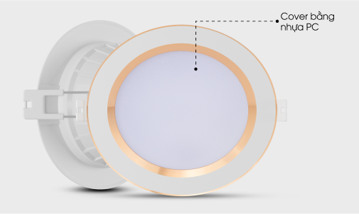 Thiết kế mặt đèn lõm nhẹ giúp ánh sáng tán đều xuống dưới, không gây lóa khi nhìn trực diện, phù hợp lắp trong phòng khách, phòng ngủ hoặc khu vực dùng lâu dài.