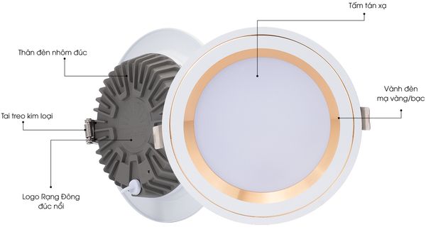 Đèn sử dụng chip LED và nguồn chất lượng cao từ Rạng Đông, hoạt động ổn định lâu dài, ít suy giảm quang thông theo thời gian, hạn chế việc phải tháo trần thay đèn nhiều lần — rất có lợi cho nhà ở và công trình.