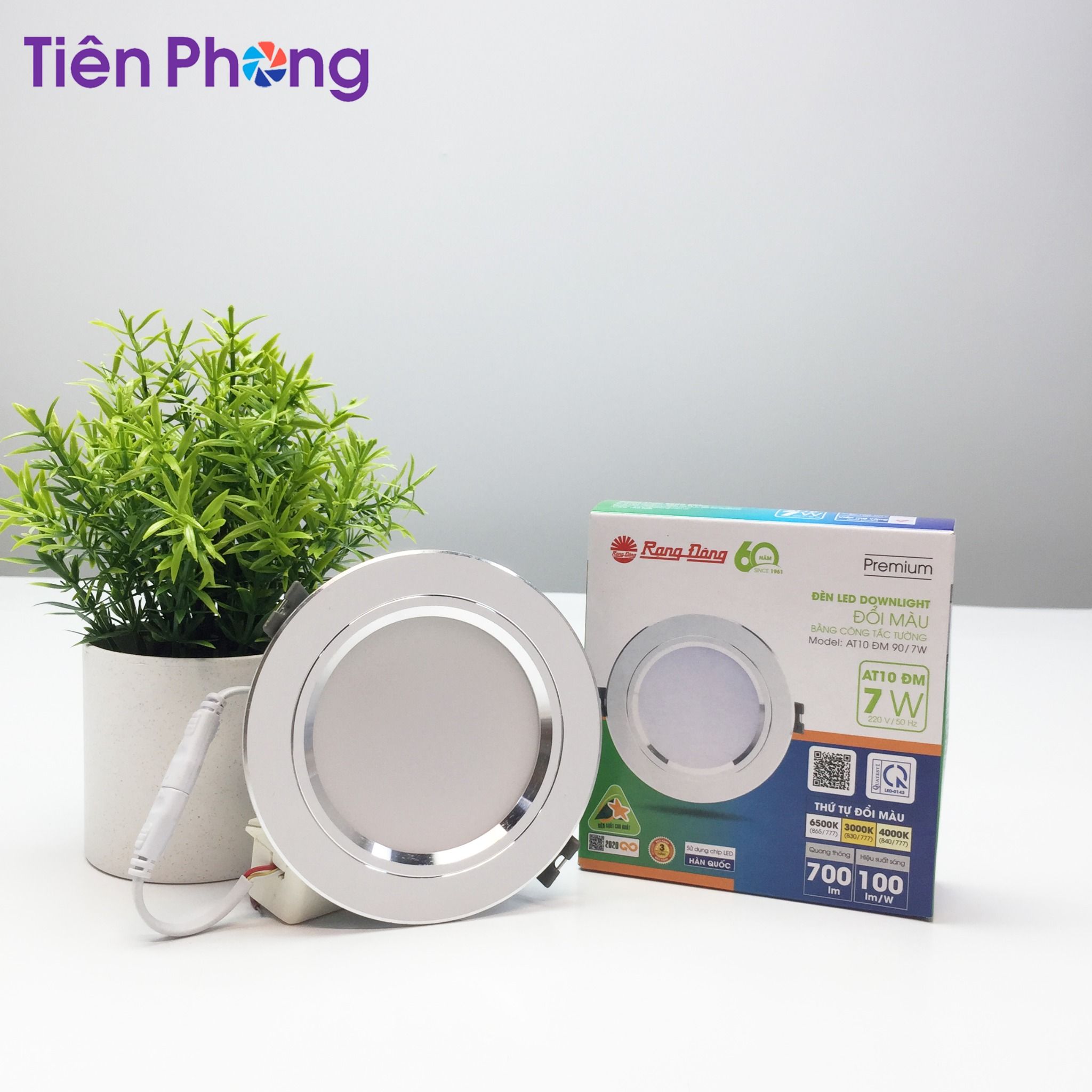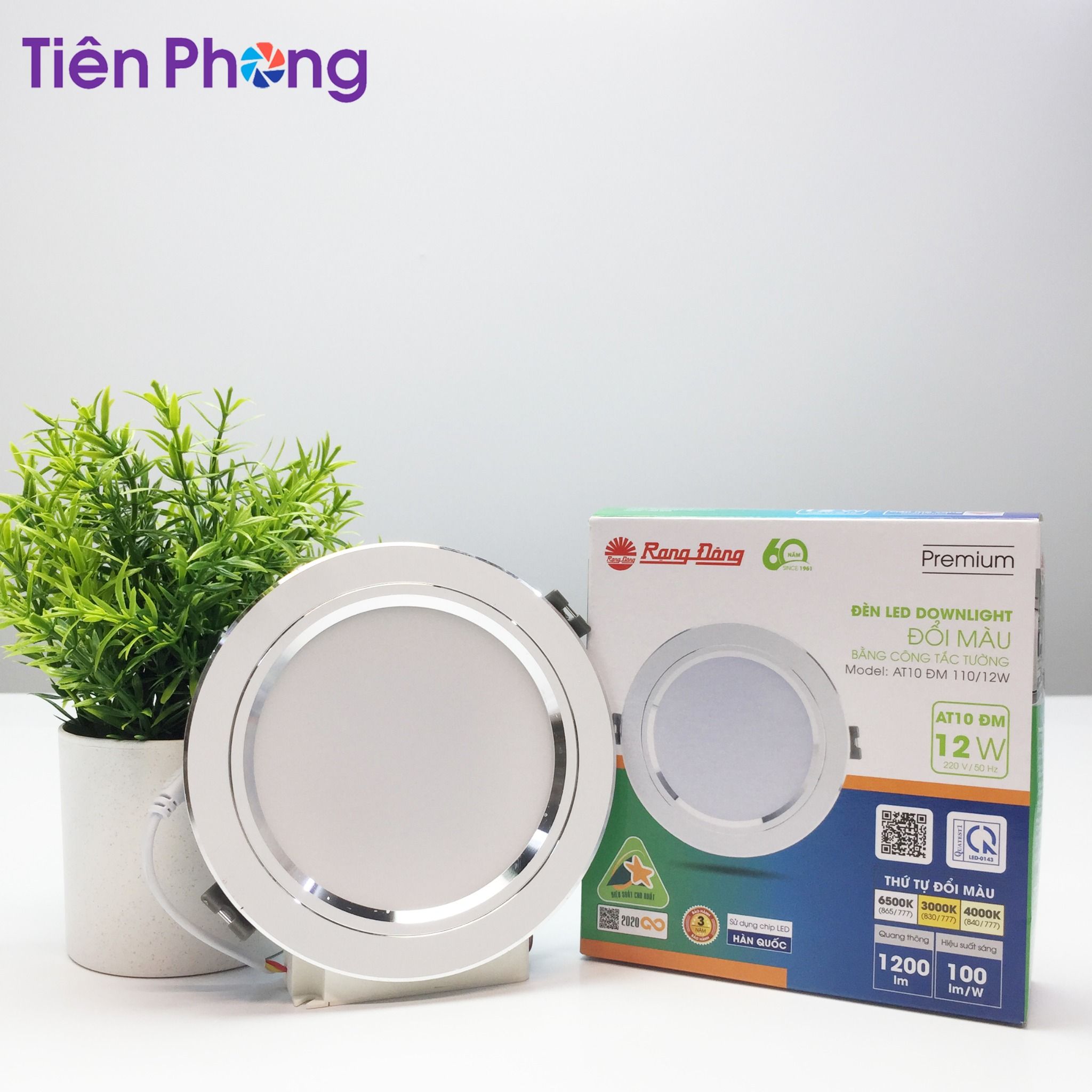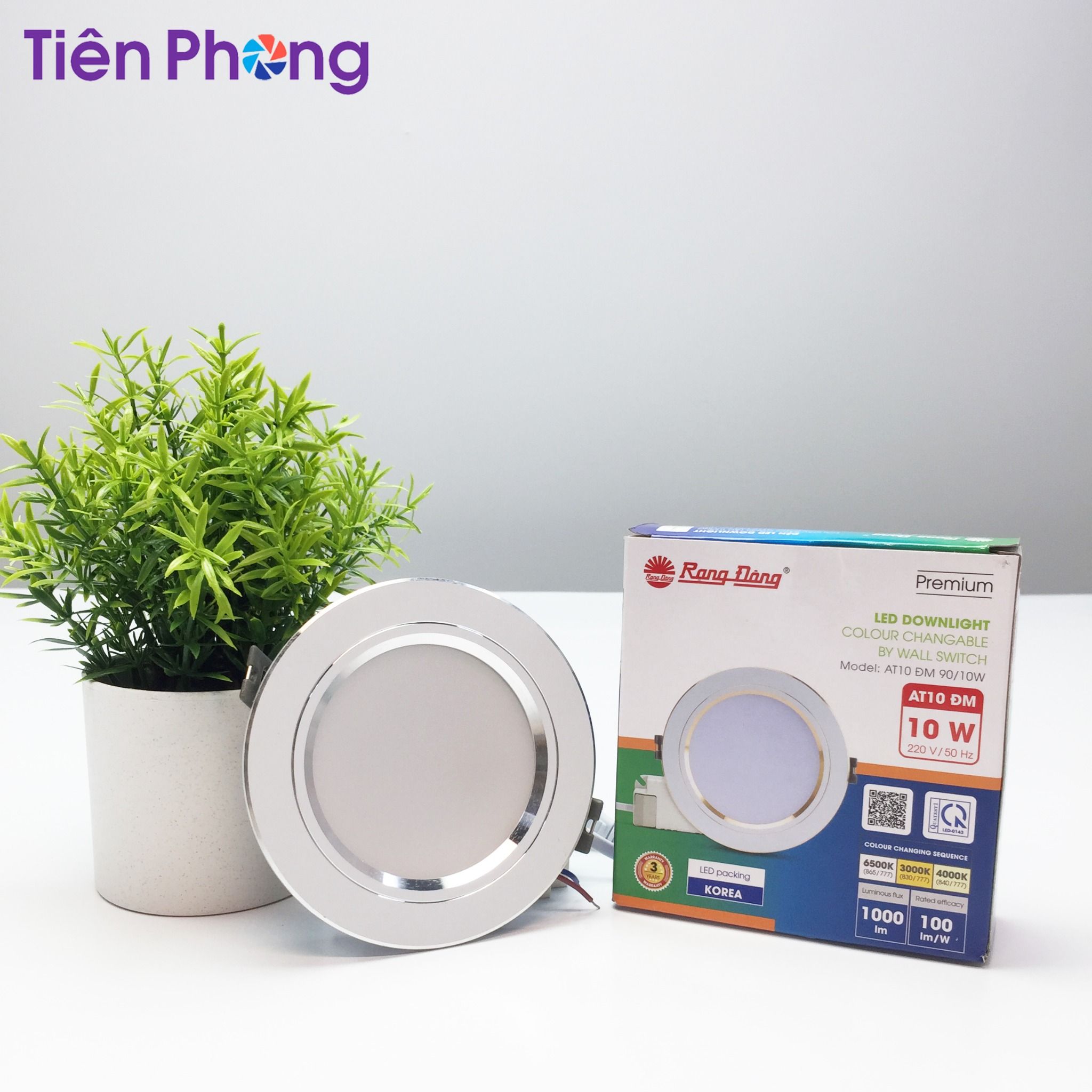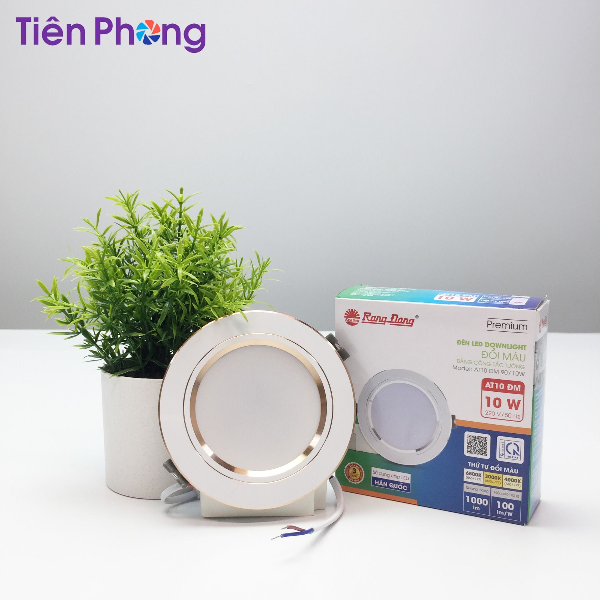 Đèn LED Downlight âm trần AT10 đổi màu Rạng Đông do công ty Rạng Đông sản xuất. AT10 đổi màu sử dụng chip LED Hàn Quốc cao cấp, cho ánh sáng tự nhiên, chân thực, mang lại trải nghiệm ánh sáng dễ chịu cho bạn.