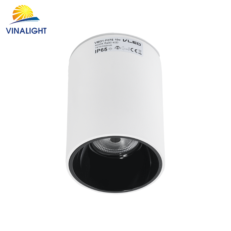 VMD1-F075 và VMD1-F095 là dòng đèn spotlight gắn nổi với khả năng chống nước và chống bụi IP65, lý tưởng cho các không gian ngoài trời hoặc khu vực có độ ẩm cao. Thiết kế hình trụ đơn giản, tinh tế với hai tùy chọn màu trắng và đen giúp dễ dàng phối hợp với nhiều kiểu kiến trúc hiện đại.