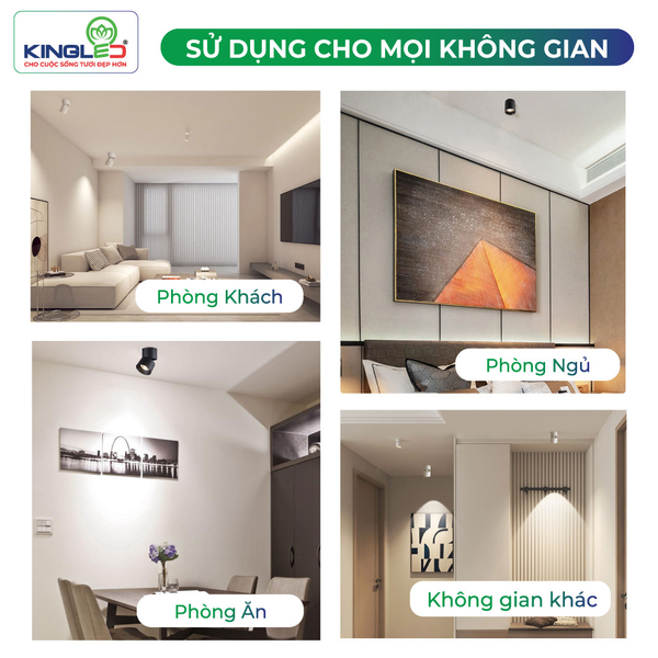 Đầu đèn có thể điều chỉnh mọi hướng, cho phép chiếu rọi vật thể ở các vị trí và góc độ khác nhau. Rất phù hợp cho trưng bày, chiếu tranh, chiếu logo hoặc tạo điểm nhấn trang trí.