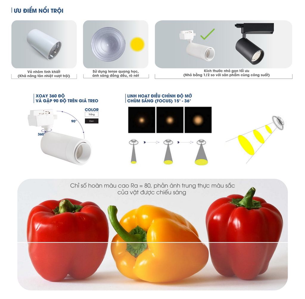 Đèn LED rọi ray TRL06 Rạng Đông là dòng đèn chuyên dụng cho chiếu sáng điểm nhấn. Với thiết kế hiện đại, khả năng điều chỉnh góc chiếu linh hoạt và ánh sáng trung thực, sản phẩm giúp làm nổi bật vật thể, tạo hiệu ứng không gian sang trọng và thu hút. Đây là lựa chọn lý tưởng cho showroom, cửa hàng thời trang, phòng trưng bày và cả không gian gia đình.