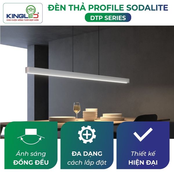 Đèn thả văn phòng LED Profile Sodalite KingLED là dòng đèn LED cao cấp thiết kế dạng profile thả trần, mang phong cách hiện đại và tối giản. Sản phẩm cung cấp ánh sáng đều, dịu, không chói, đáp ứng tiêu chuẩn chiếu sáng văn phòng, giúp tăng hiệu suất làm việc và bảo vệ thị lực người dùng.